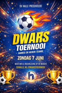 Op zondag 7 juni is het weer zover: SV Halle organiseert het jaarlijkse Dwarstoernooi voor dames- en herenteams! Schrijf je op tijd in, want VOL = VOL!